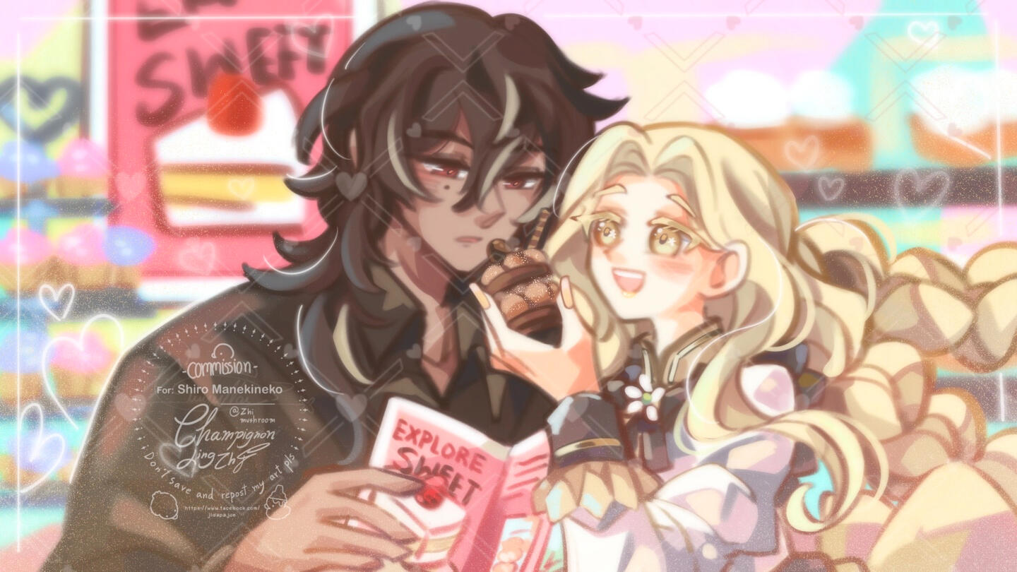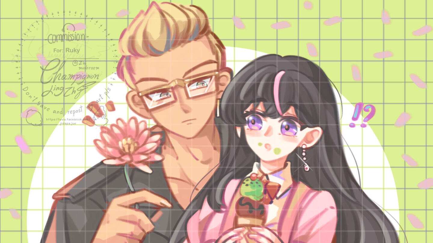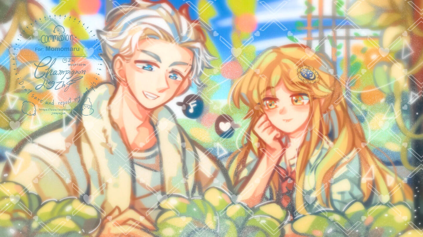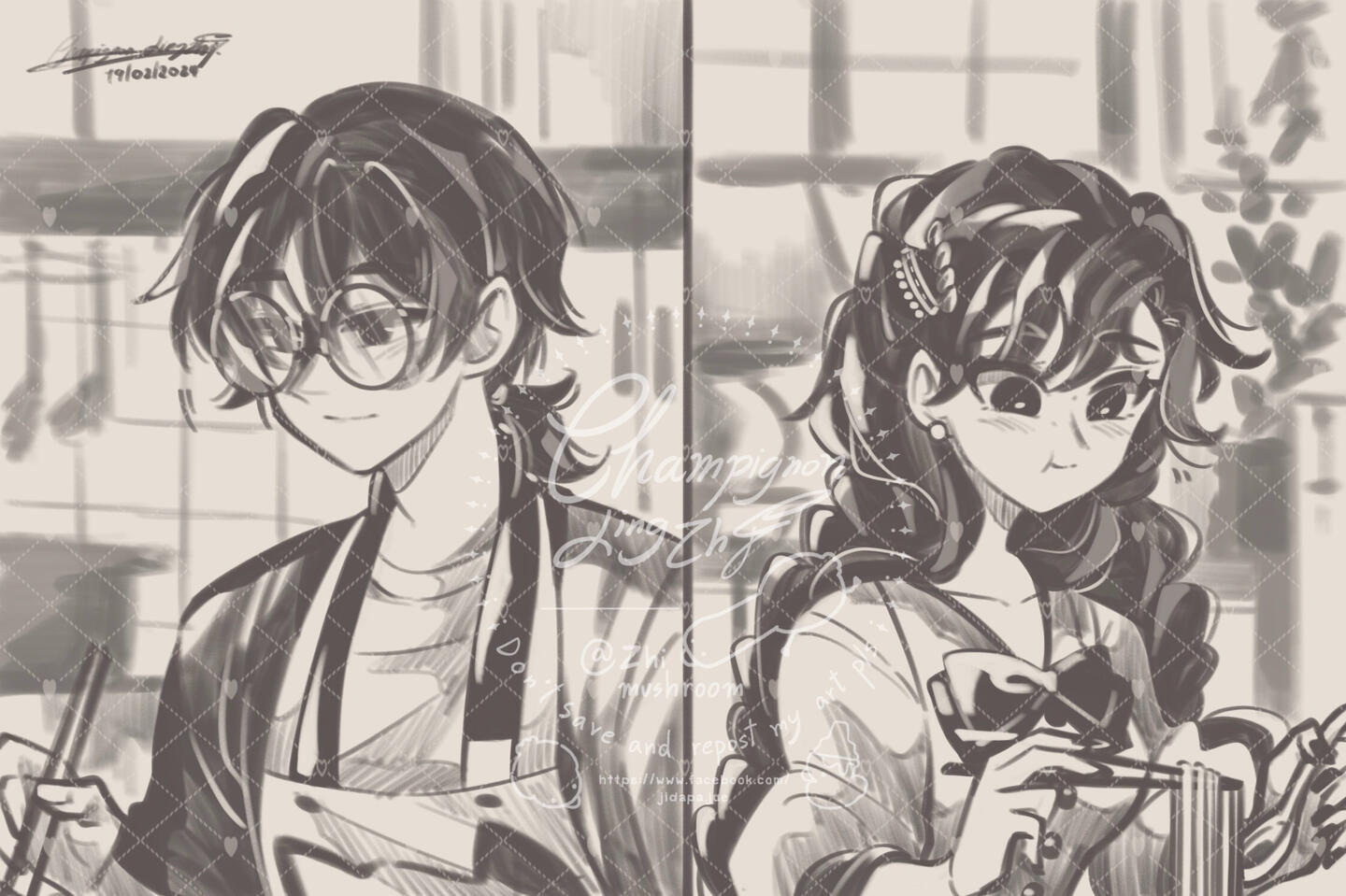แนบภาพ A กับ B รวมถึงเสื้อผ้าที่สวมใส่โดยรายละเอียดไม่เยอะ โมเม้นของทั้งคู่เป็นคนรักกันหวานชื่น โรแมนติกละมุน บรรยยกาศสดใส ทั้งคู่ชอบเดินเล่นกันที่สวน ชอบไปปิกนิกทำอาหารด้วยกันบลาๆๆ Aจะนิสัยนิ่งๆแต่จะละมุนอ่อนโยนกับB กับBจะขี้เล่นติดสกินชิพA เป็นต้น