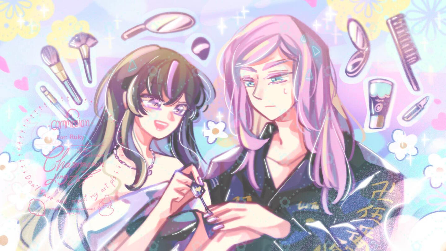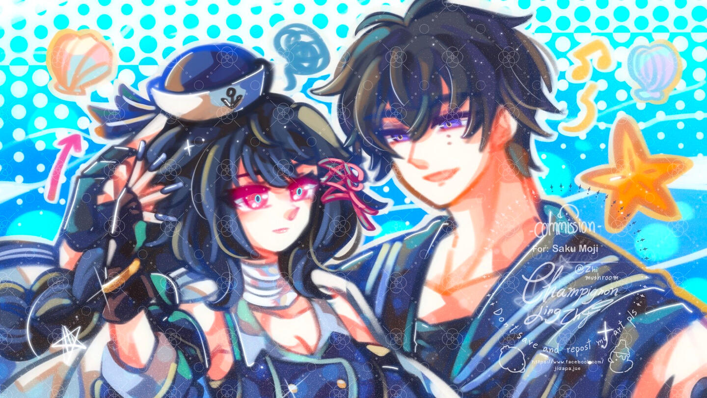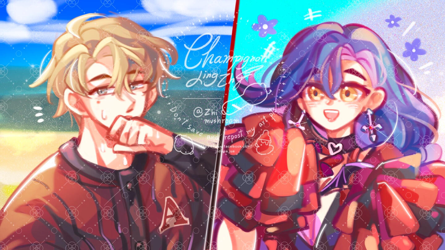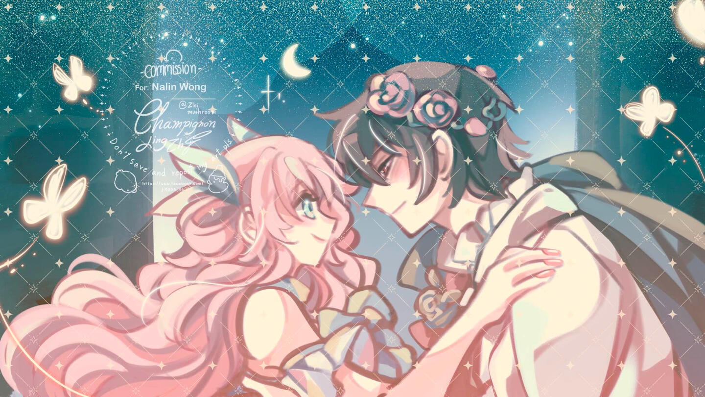 แนบภาพ A กับ B รวมถึงเสื้อผ้าที่สวมใส่โดยรายละเอียดไม่เยอะ โมเม้นของทั้งคู่เป็นคนรักกันหวานชื่น โรแมนติกละมุน บรรยยกาศสดใส ทั้งคู่ชอบเดินเล่นกันที่สวน ชอบไปปิกนิกทำอาหารด้วยกันบลาๆๆ Aจะนิสัยนิ่งๆแต่จะละมุนอ่อนโยนกับB กับBจะขี้เล่นติดสกินชิพA เป็นต้น